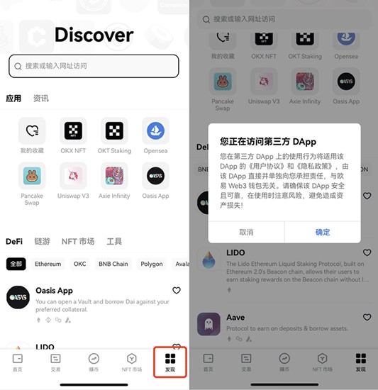 平台内置Web3钱包接入模块,集成超过2000个精选DApp服务入口。用户可通过智能分类检索系统,在DeFi、链游、NFT等四大垂直领域快速定位目标应用。高频使用场景支持收藏夹功能,重要DApp一键直达提升操作效率。