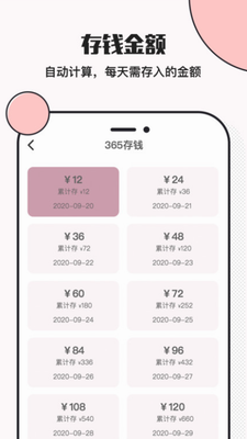 3、智能生成存钱进度日历,每日存入金额自动计算并推送提醒