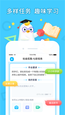 2、电子作业系统支持多媒体格式提交,可上传朗读音频、书法照片、实验视频等多种形式的学习成果。