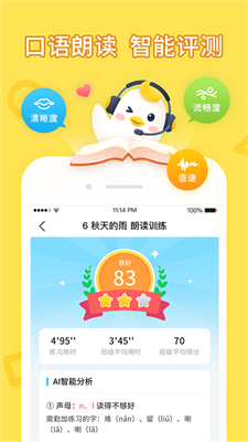 @阳光小豆包:孩子每天主动打开APP预习课文,朗读评分功能让他特别有成就感,单元测试进步了15分!