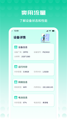 2、采用可视化数据面板,分类展示设备运行状态与流量消耗趋势,重要信息一目了然