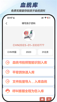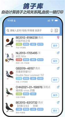 3、影像智能归档技术:通过手机拍摄自动关联血统证书,建立全棚赛鸽可视化数据库