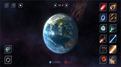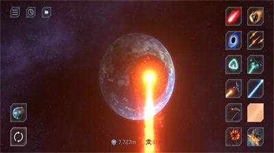 1、自由选择八大行星作为实验对象,通过调整陨石速度与角度观察不同破坏效果