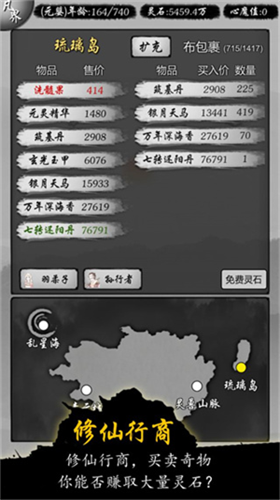 1、灵脉经营体系:通过动态市场机制进行跨地域贸易,低买高卖稀有灵材,建立覆盖各大陆的物流网络。价格波动系统模拟真实市场规律,需预判行情趋势进行仓位管理。