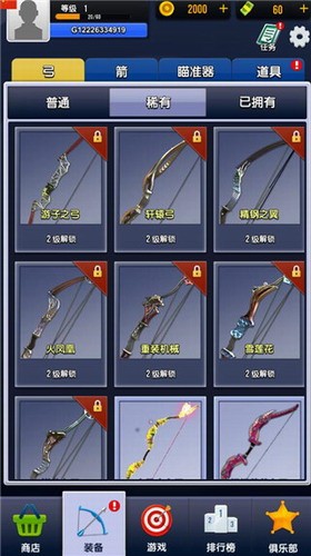 1、三段式成长路径设计,包含传统弓、复合弓、反曲弓三大职业发展方向