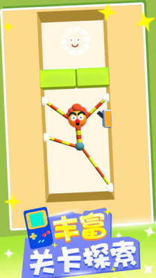 橡皮人快跑伸展挑战全皮肤解锁是一款以弹性角色为核心的动作解谜手游,玩家通过拉伸角色的四肢完成物理互动挑战。游戏采用直观的触控操作模式,只需单指拖拽即可操控橡皮人做出各种夸张动作,在充满障碍的场景中寻找通关路径。