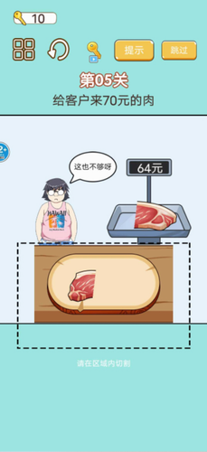 精准称重切割是一款融合物理模拟与策略计算的休闲手游,采用明快清新的卡通美术风格,为玩家打造轻松愉悦的游戏环境。玩家化身市场摊主,通过精准切割满足顾客的重量需求,每次下刀都需谨慎计算——既要避免切割过量导致亏损,又要保证足额份量维持店铺口碑。