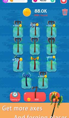 2、武器形态进化树体系,普通铁斧通过合成可进阶为寒冰战斧等传说级兵器