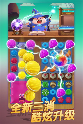 1、元素连锁反应:当连续消除特定水果时,会触发对应属性的魔法特效,例如樱桃炸弹可清除3x3范围,柠檬闪电能贯穿整列