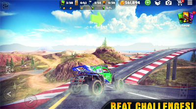 车库系统提供20+底盘原型,涵盖沙漠卡丁车、极地履带车等特种车辆。深度改装模块支持悬挂高度三级调节、发动机增压模组装配。完成赛事挑战可获取限定涂装,动态贴纸系统允许玩家创作个性化车身艺术。