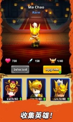3、九宫格阵法自由搭配,前锋盾兵可反弹部分弹幕,中军策士能减缓弹幕速度,后排弓手专注输出