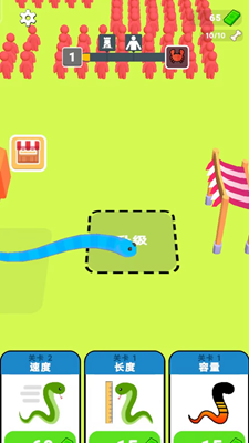 2、动态成长系统通过收集能量实现蛇体进化,长度延伸带来更强围剿能力