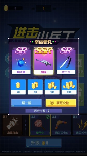 2、武器成长体系,通过关卡收集材料升级装备属性