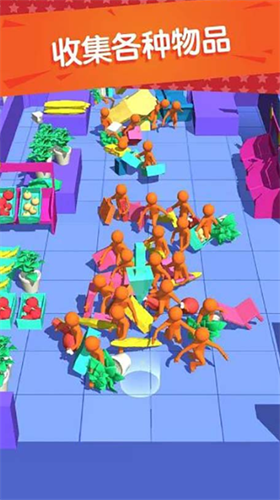 购物狂潮无限金币轻松畅玩是一款极具趣味性的休闲益智游戏,玩家将化身超市抢购达人,指挥专属小队争夺货架上的各类商品。物理引擎打造的碰撞系统让每次抢夺都充满戏剧性,通过灵活走位避开竞争者或正面突破障碍,在货架清空前积累最多战利品的玩家将成为最终赢家。组建强力购物军团并持续升级队伍规模,体验从单人采购到团队扫货的成长乐趣。