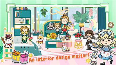 全动态场景包含昼夜光影变化与天气系统,商场、美容院等场所设置20+互动点位。家居系统支持墙面改造与家具自由摆放,烘焙坊等特色场景配置专属小游戏。独创场景融合机制可实现跨场景物品调用。
