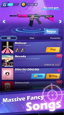 2025节奏射击畅玩版将音乐律动与射击操作创新融合,玩家需跟随乐曲节拍触发精准打击。与传统音游不同,游戏独创枪械同步机制,每把武器配备独特音效反馈系统,搭配几何视觉元素构成沉浸式视听盛宴。收录全球热门曲目如《Fade》《出山》《下山》等经典旋律,结合动态难度曲线设计,让玩家在指尖跃动中感受肾上腺素飙升的快感。
