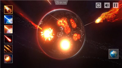 这款模拟类游戏以独特的宇宙题材和创新玩法吸引着广大玩家,逼真的天体物理效果配合精细的星球建模,让玩家在指尖就能体验毁天灭地的震撼。基于真实天文数据打造的星体系统,每个天体都呈现出独特的物质结构,当高能激光束穿透大气层或核爆冲击波席卷大陆时,会实时演算出符合科学规律的破坏效果。