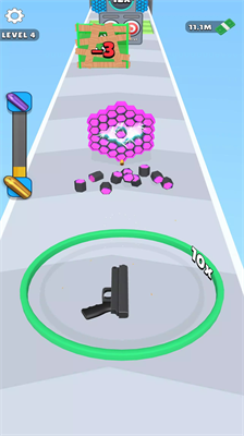旋转射击免费解锁畅玩版是一款融合策略与技巧的射击类手游,独特的动态武器倍增系统成为核心玩法。环绕枪械的旋转倍增器会根据碰撞位置实时生成弹道轨迹,玩家需精准把握子弹折射角度与分裂数量,通过物理运算实现几何级火力覆盖。游戏采用动态难度调节机制,前三十关逐步引导玩家掌握抛物线预判技巧,中期关卡加入移动标靶与能量护盾设计,后期更创新性融合解谜元素,需要玩家在限定弹药内完成空间几何测算。