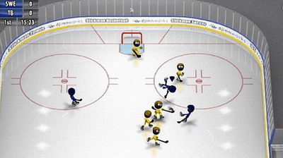 游戏采用双模操作设计,虚拟摇杆配合智能切换按键的机制极具巧思——进攻状态下自动切换为传球/射门组合,防守时则转为光标切换与拦截功能。这种动态按键布局既降低了操作门槛,又能让玩家快速适应攻防转换节奏。火柴人标志性的极简画风摒弃冗余细节,让玩家注意力始终聚焦在冰球轨迹与战术配合上。