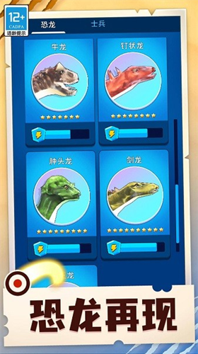 游戏采用前后排纵深战场设计,重甲恐龙凭借高额生命值承担前线防御职责,攻击型士兵则需配置在后方进行火力输出。随着战局推进,通过合成系统可将基础单位进化为高阶形态——弓兵可蜕变为元素法师,甲龙能升级为装甲暴龙。这种阶梯式成长体系要求玩家在资源分配与升级路线上做出战略性抉择。