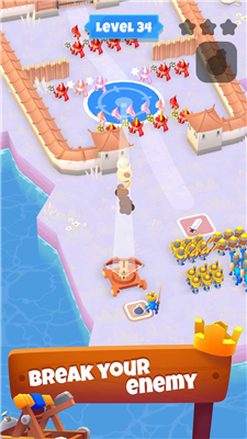 提供90+风格迥异的敌方据点供玩家征伐,每次战役胜利后可选择摧毁或收编敌方单位。科技树涵盖军事强化、民生改善、建筑革新三大分支,解锁弓骑兵、重甲盾卫等12种特色兵种。通过宫殿扩建系统,可提升离线收益获取效率。