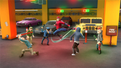 2、环境互动机制允许抓取场景道具进行投掷攻击,特定建筑可触发终结动画