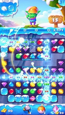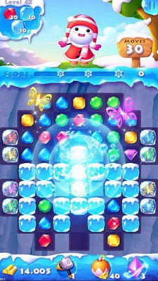 游戏独创五维消除机制,除了基础的三消规则,更引入「寒冰爆破」「极光连锁」「暴雪连击」等12种特效组合。玩家可通过收集雪人徽章解锁隐藏关卡,在企鹅商队处兑换限定版冰晶皮肤。每日挑战模式会随机生成特殊冰障,成功破解可获得限定头像框和动态表情包。