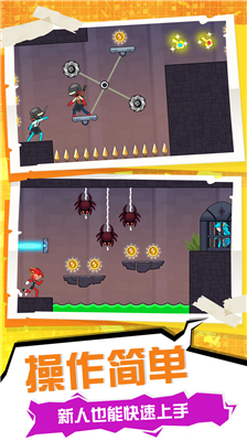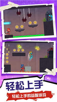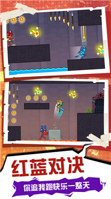 1、创新双人操控系统突破传统模式,玩家通过虚拟摇杆同步控制红蓝角色
