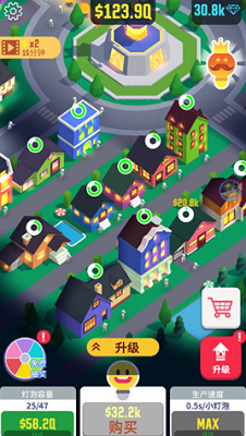 点亮城市免广告版作为一款融合治愈美学与策略经营的休闲手游,以极简画风构筑出独特的暗夜世界。玩家将化身光明使者,通过培育会发光的精灵族群,逐步驱散笼罩城市的厚重夜幕。游戏独创的光能循环系统,让每个被点亮的区域都能持续产出光之能量,形成生生不息的光明网络。