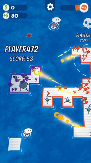 在动态生成的海域中,每艘木筏都是可扩展的战略据点。通过打捞漂浮的木板残骸,玩家可逐步扩建移动堡垒的面积。战场中随机刷新加速涡轮、远程炮台等战术组件,合理装配这些装置可形成独特作战风格。实时匹配机制让玩家随时遭遇全球对手,10分钟一局的快节奏对抗考验即时决策能力。