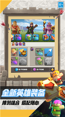 1、建立攻防兼备的军事要塞,自由组建包含野蛮人、法师、飞龙等十二个特色兵种的混编军团