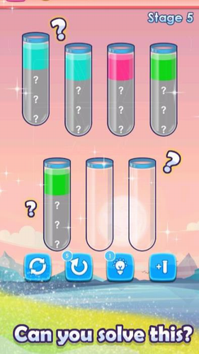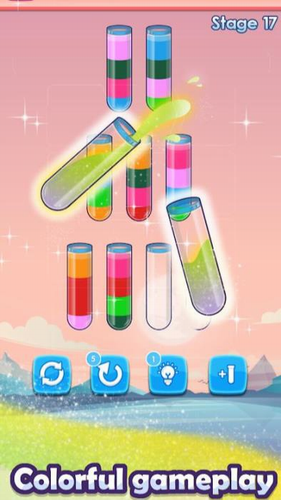 1、每关配置不同色彩分布的试管阵列,要求玩家通过精准转移操作,最终实现同色液体完全分离