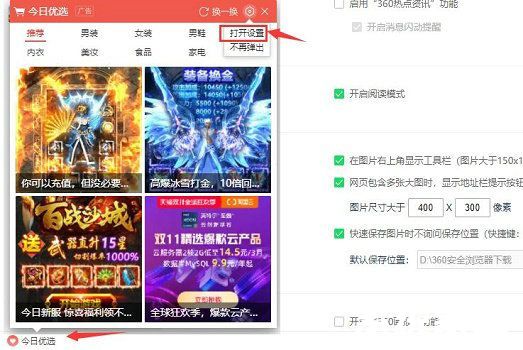 6、返回浏览器主界面,点击左下角「今日优选」入口进入二级设置界面