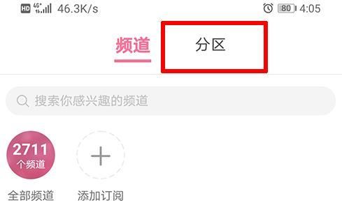 2、进入频道页面后,注意顶部导航区域设有「分区」标签。该标签采用蓝色高亮显示,紧邻推荐频道右侧,点击后即可展开完整的垂直内容分类体系。