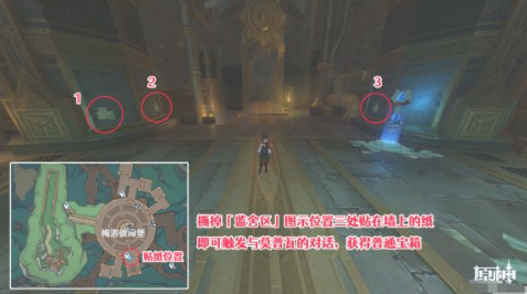 1号宝箱获取攻略:建议优先激活区域南侧传送锚点,向东北方岩壁移动时会发现三幅特殊壁画。使用岩元素角色击碎表层覆盖物后,与驻守的NPC莫普瓦完成对话任务链,即可解锁内含2000摩拉与精锻矿的木质宝箱。