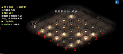 6. 终极激活:最后阶段操作第五行a、e双灯,此时将触发跨层联动效应,同步点亮所有关联灯组。此过程需确保前序步骤完全正确,否则需返回检查操作时序。
