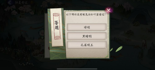 以下哪位未获鬼女红叶邀约?该题目作为《阴阳师》近期更新的特殊考核内容,在玩家群体中引发热烈讨论。针对部分参与者存在的解题困惑,本文将通过多维度解析还原官方设定,为各位阴阳师提供清晰的逻辑推导框架。