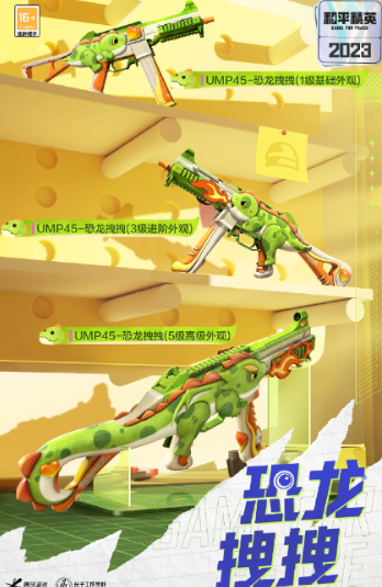 恐龙拽拽系列配套装备包含五款主题枪械皮肤:M416-侏罗纪裂痕采用化石纹理烤漆工艺,AKM-暴龙咆哮的弹匣装载口设计成恐龙利齿造型。三级背包呈现三角龙甲壳造型,展开状态下背甲鳞片会产生机械传动效果,空投箱拾取时会触发专属恐龙咆哮语音提示。