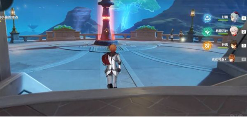 沿悬崖边缘向西南方向移动,可发现隐藏的浪船锚点装置。激活后召唤浪船,操作载具向正南方向航行约120秒,注意规避途中出现的漩涡区域。抵达枫丹外港后,中央位置设有垂直升降梯,乘梯至顶层可激活首座七天神像。