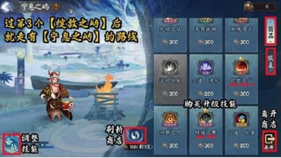 初始必选「绽放之舞」作为核心输出技,后续节点优先强化紧那罗系列技能。系统式神技能无需刻意培养,重点提升主战式神关键技能等级。推荐战斗增益选择序列: