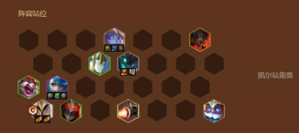 建议将凯尔置于后排中心安全位置,波比与亚托克斯顶前吸收伤害。凯隐与格温分列两侧形成交叉火力,黑默丁格居中提供辅助控制。注意根据敌方刺客位置调整核心输出站位。