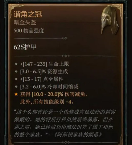 在《暗黑破坏神4》中,这件标志性装备迎来了史诗级强化。最新版本数据显示,认证版军帽能够为角色提供高达20%的生命值上限增幅与15%的全局资源生成效率。更令人瞩目的是其附加的4项全属性增益,配合10%冷却缩减与多层伤害减免效果,使其成为真正意义上的全职业通用型毕业装备。特别值得注意的是,该装备独特的+4全技能等级加成,彻底打破了传统配装思路,为各职业构筑开辟了全新可能性。