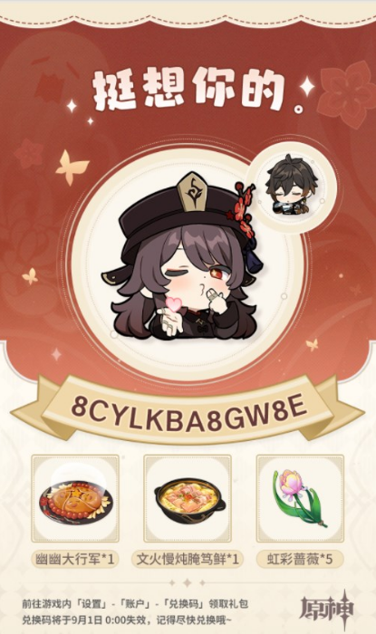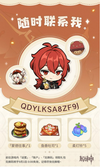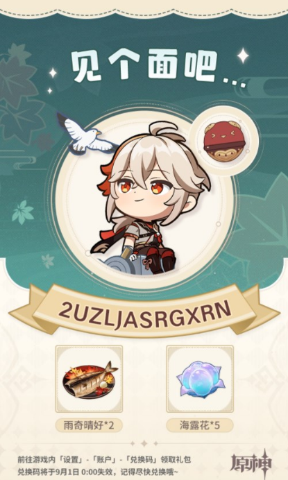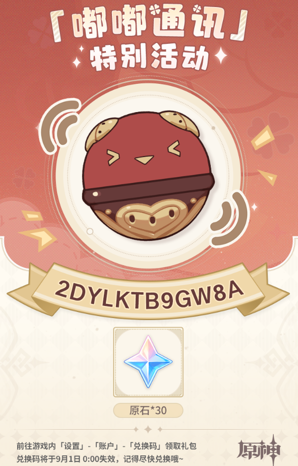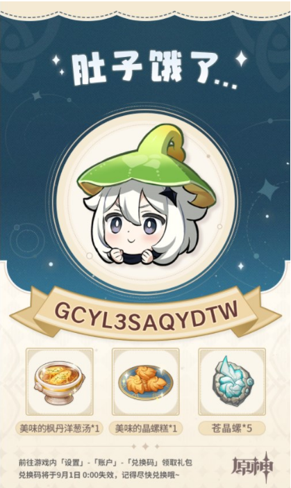 活动开放时段为8月16日至20日每日10:00-20:00,所有兑换码将于9月1日零点统一失效。旅行者需确保游戏角色冒险等阶达到2级以上方可激活礼包内容,具体兑换流程如下: