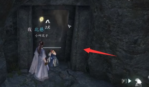 抵达目标坐标后可见隐蔽石制门扉,该入口需完成前置条件方可开启。建议优先推进「长歌献君·下卷」系列任务获取开启权限。若任务进度未达标,可尝试在入口处等待其他玩家开启石门时同步进入。