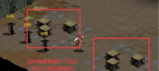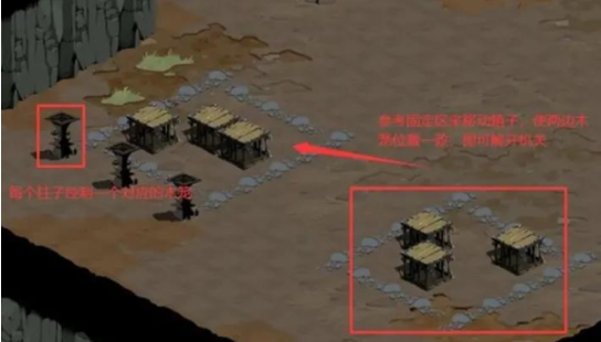 进入霜语山洞后触发木笼机关挑战,系统分为固定区(左侧)与操纵区(右侧)。解谜要领: