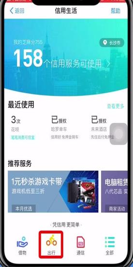 4. 在生活服务分类中选择"出行"类别,这里汇集了多种交通相关服务