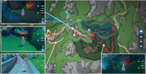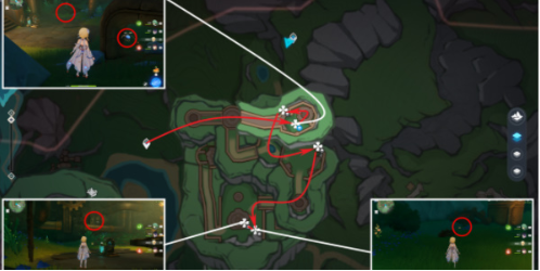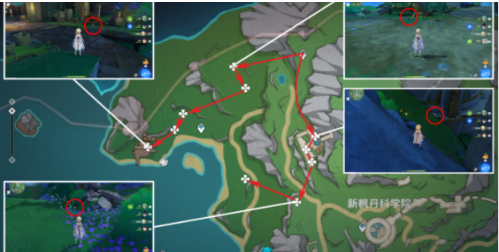 该区域10个单元呈环形分布,需注意地下遗迹入口处的隐藏点位。携带元素视野可快速定位被遮挡的采集目标,建议使用钟离等护盾角色应对遗迹守卫的突然激活。