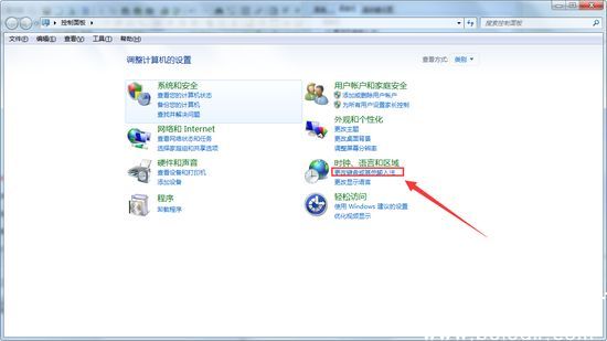 2、通过系统控制面板进入「时钟和区域」设置项,选择「更改键盘或其他输入法」进行深度配置;