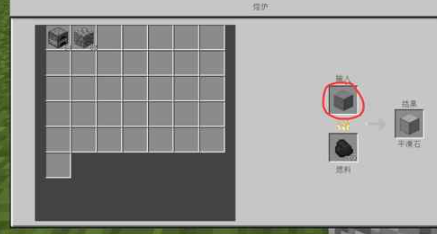 2、初次熔炼操作:打开熔炉交互界面,将圆石放置在上方原料格,燃料区放入煤炭或木炭。每块燃料可烧制8个单位原料,建议一次性熔炼多组圆石。产出物为普通石材,这是制作平滑石的必经阶段。