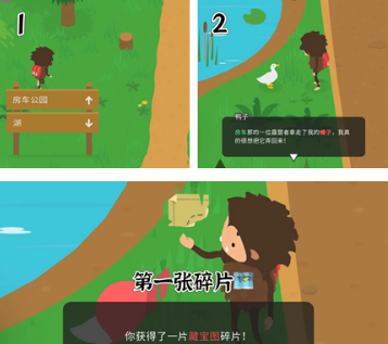 传送至房车营地后,需与手持木牌的鸭子进行对话交互,完成指定支线挑战即可解锁首张藏宝图残片。